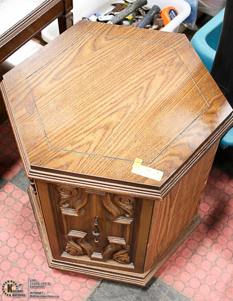 HEXAGON WOOD END TABLE WITH CUBBY SPACE