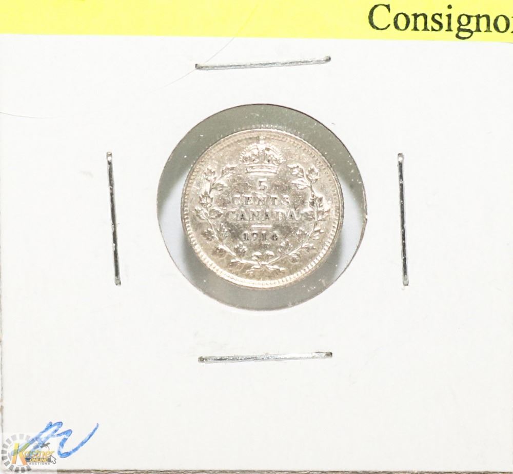 HIGH GRADE 1914 CANADIAN GV SILVER 5 CENT COIN AV