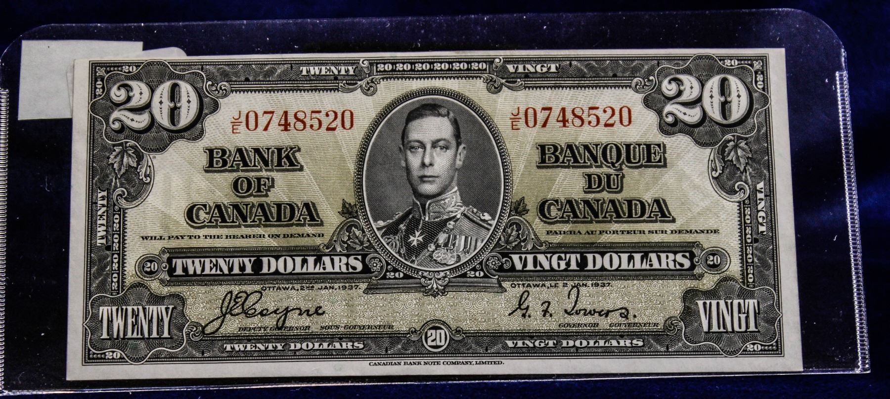 HIGH GRADE AU-UNC 1937 CANADA $20 BANKNOTE