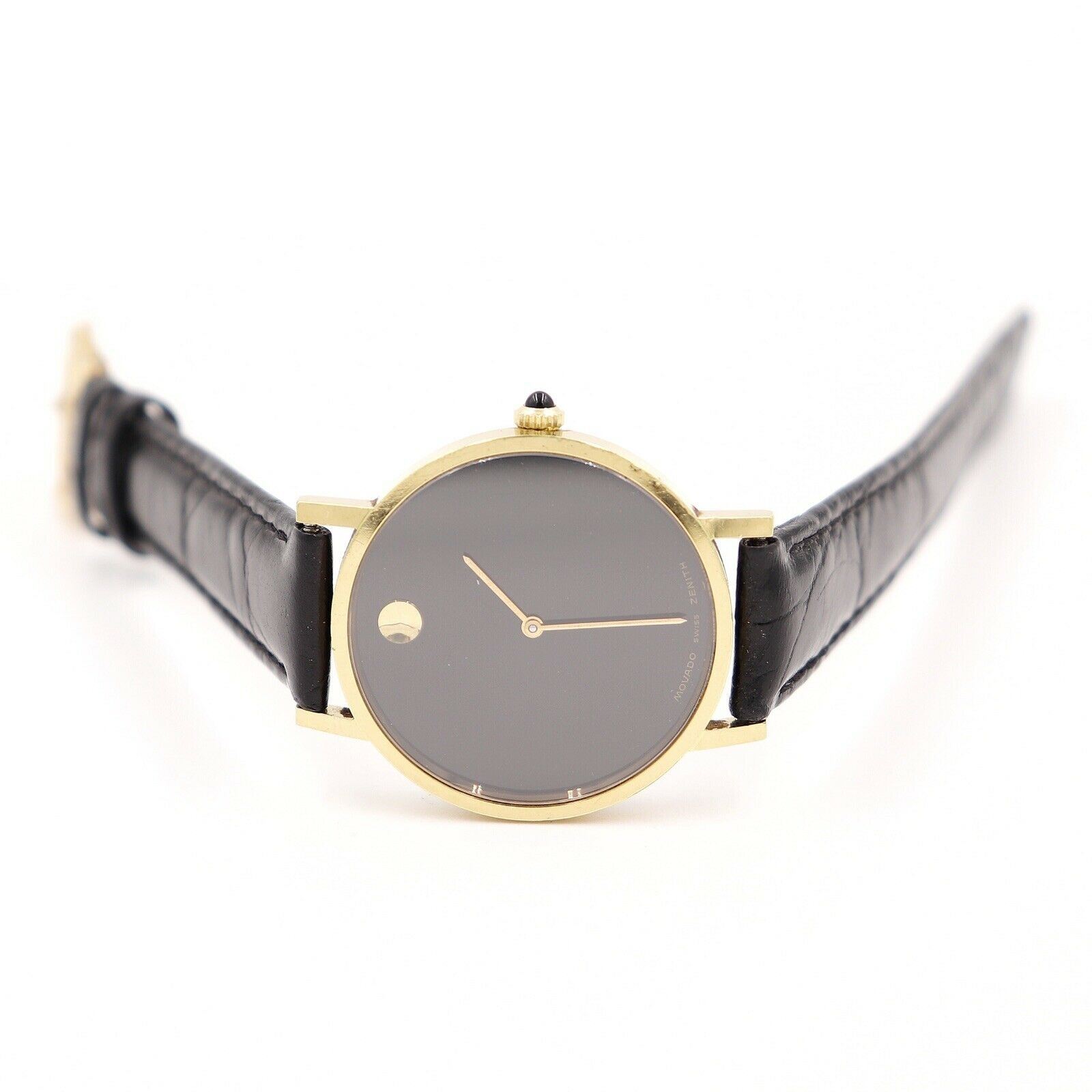 HAND WINDING VINTAGE WATCH. MINT CONDITION WITH ORIGINAL LEATHER STRAP AND ORIGINAL BOX(INNER & OUTER). RARE MODEL 18K GOLD PLATED BEZEL. JEWELLERY.