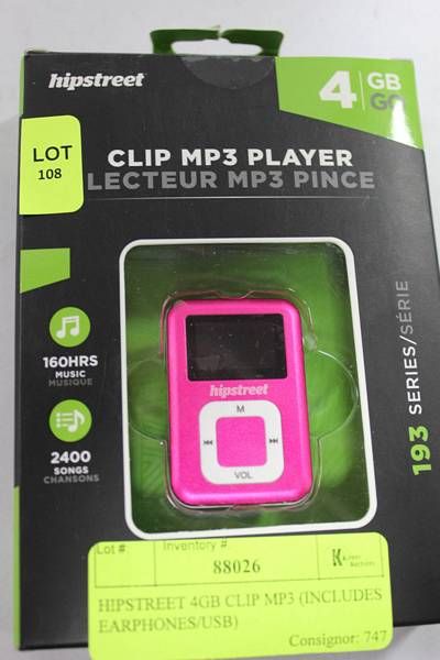 HIPSTREET 4GB CLIP MP3 (INCLUDES EARPHONES/USB)