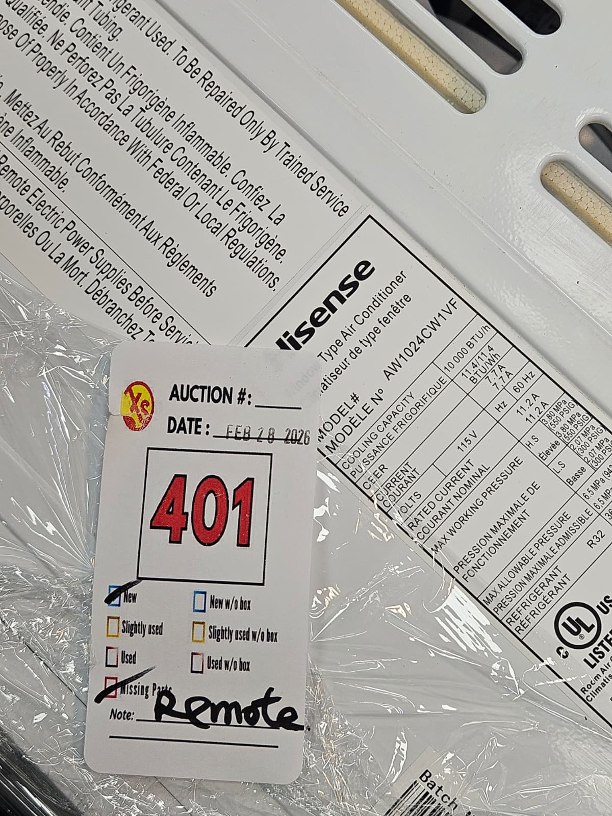 HISENSE 10,000 BTU (450 SQ. FT.) SMART WIFI WINDOW AC (NEW, MISSING REMOTE)