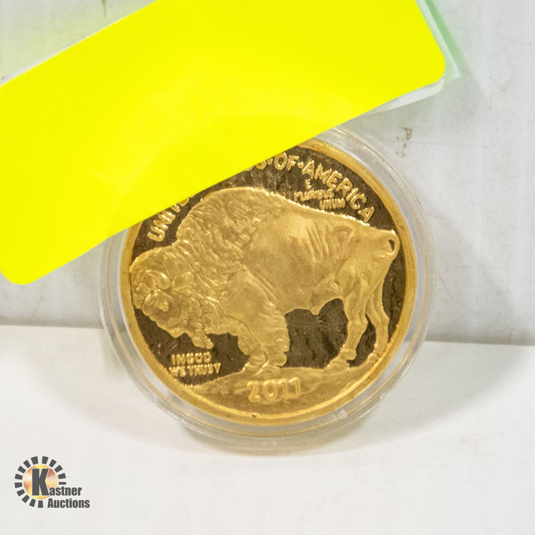BUFFALO HEAD 24K GOLD PLATED BY AMERICAN MINT **ALL ITEMS MUST BE REMOVED BY 5PM SATURDAY, DECEMBER 9TH 2023. ALL REMAINING ITEMS WILL BE SUBJECT TO A $6.00 PER DAY STORAGE CHARGE. ANY ITEMS REMAINING AFTER THURSDAY, DECEMBER 21ST 2023 WILL BE CONSIDERED FORFEITED. NO REFUNDS WILL BE ISSUED FOR FORFEITED ITEMS. TO SCHEDULE A PICK UP APPOINTMENT CLICK HERE