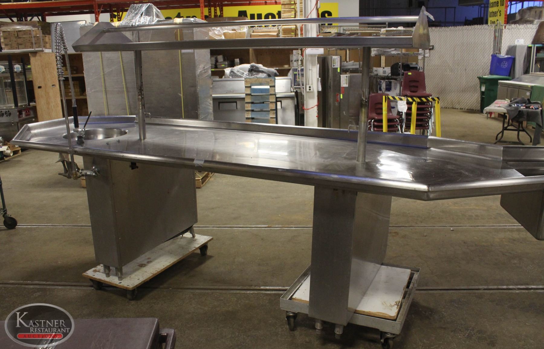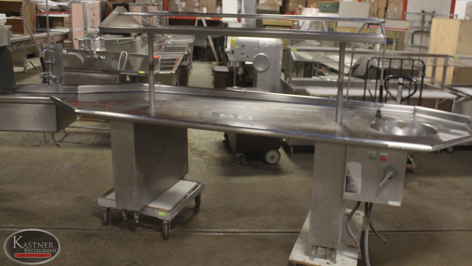 S/S RUNOFFS. M#: CRS66A, 2 POWER SOURCES: 3-PHASE 600V & 120/208V 7.4A OPTI-RINSE EQUIPPED. 86" X 30" X 70" 132" RUNOFF(158" INCLUDING SINK) X 44" X 36"(85" WITH ADJUSTABLE RACK). SINK W/ PRE-RINSE , AND RINSING BOWL-SINK W/ PRE-RINSE. CRESCENT RUNOFF W/ DRAIN BASIN(UNKNOWN POWER SWITCH AT BASIN) 12' X 26" X 36"