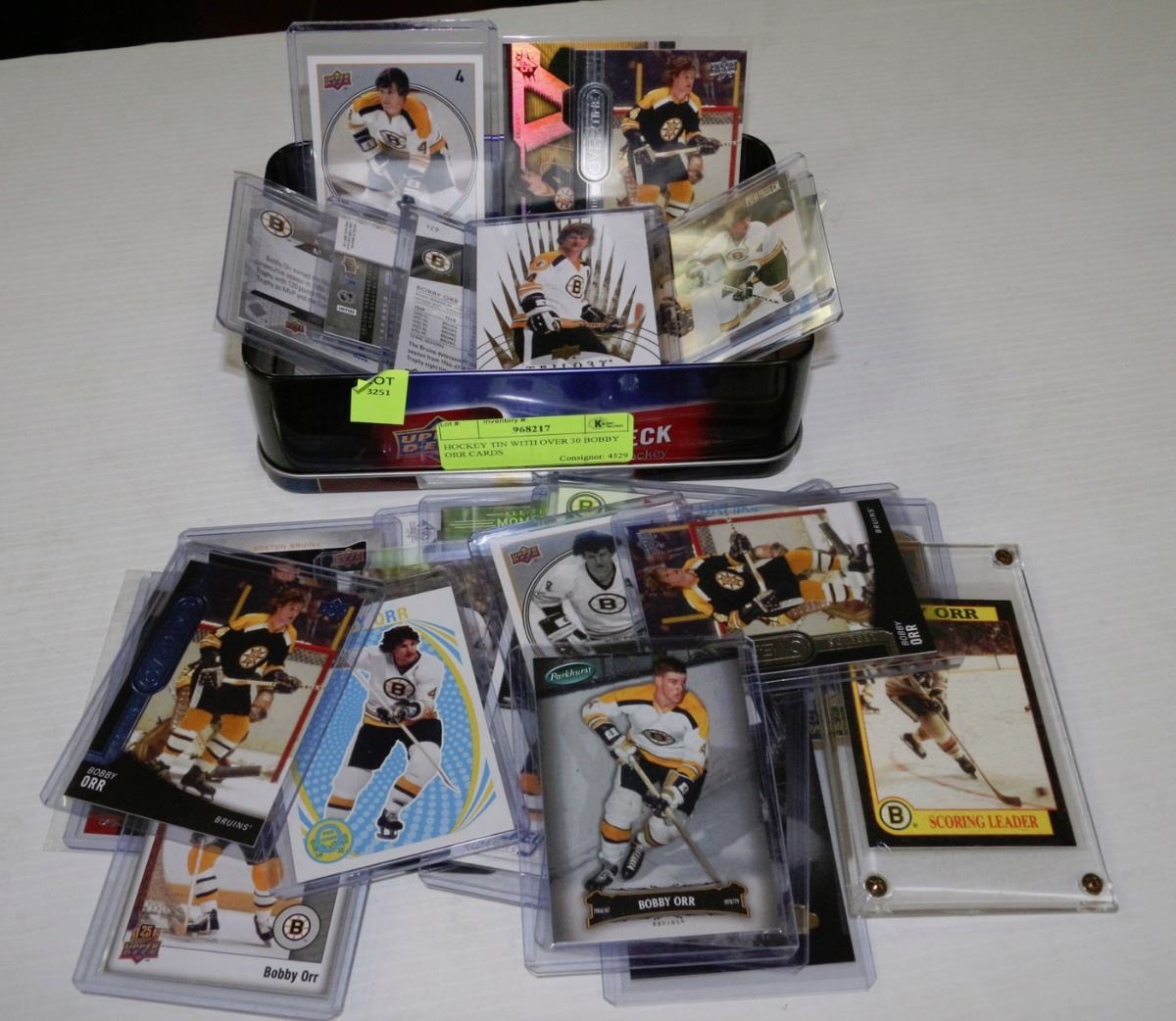HOCKEY TIN WITH OVER 30 BOBBY ORR CARDS