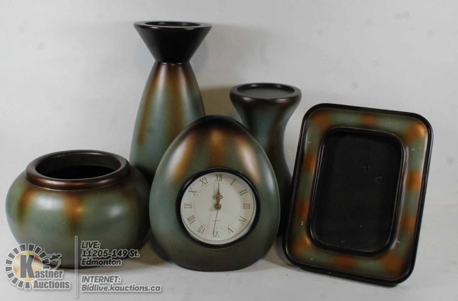 5 HOME DECOR ITEMS INCLUDING CLOCK AND PHOTO FRAME