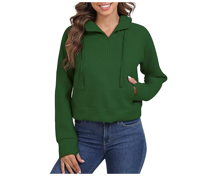 HOODIES FOR WOMEN FALL CROPPED SWEATSHIRT THUMBHOLE FLEECE JACKET WITH POCKETS QUARTER ZIP PULLOVER WOMEN TOPS. LARGE