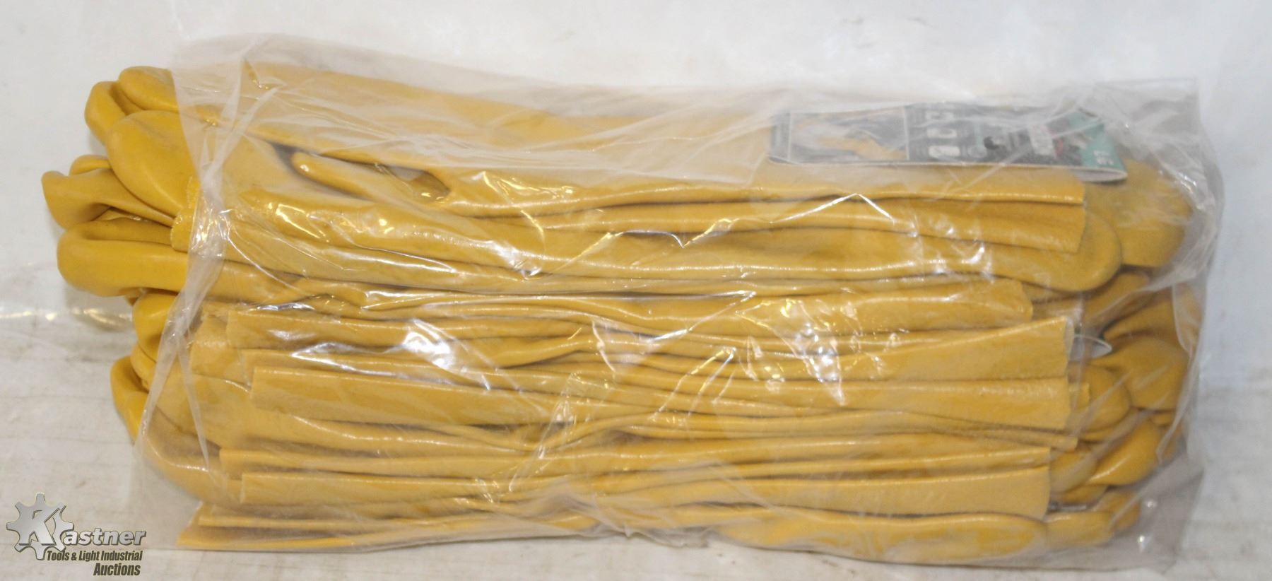 NEW YELLOW PVC SIZE - L - GAUNTLET STYLE GLOVES WITH INTERLOCK LINER - LOT OF 10 PAIRS
