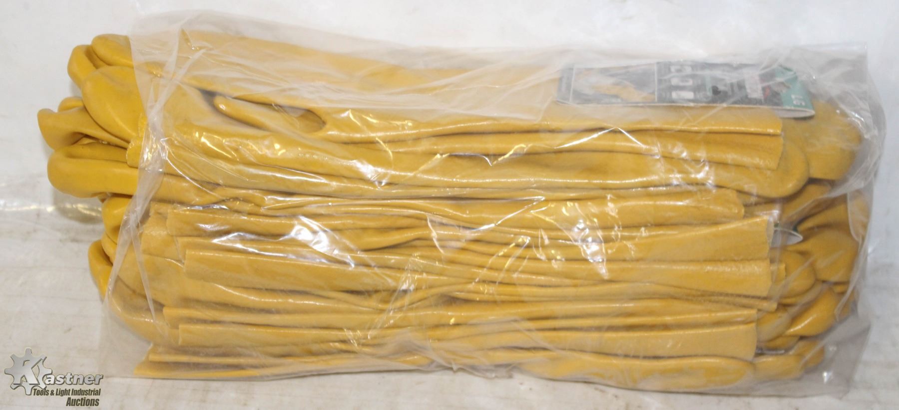 NEW YELLOW PVC SIZE - L - GAUNTLET STYLE GLOVES WITH INTERLOCK LINER - LOT OF 10 PAIRS