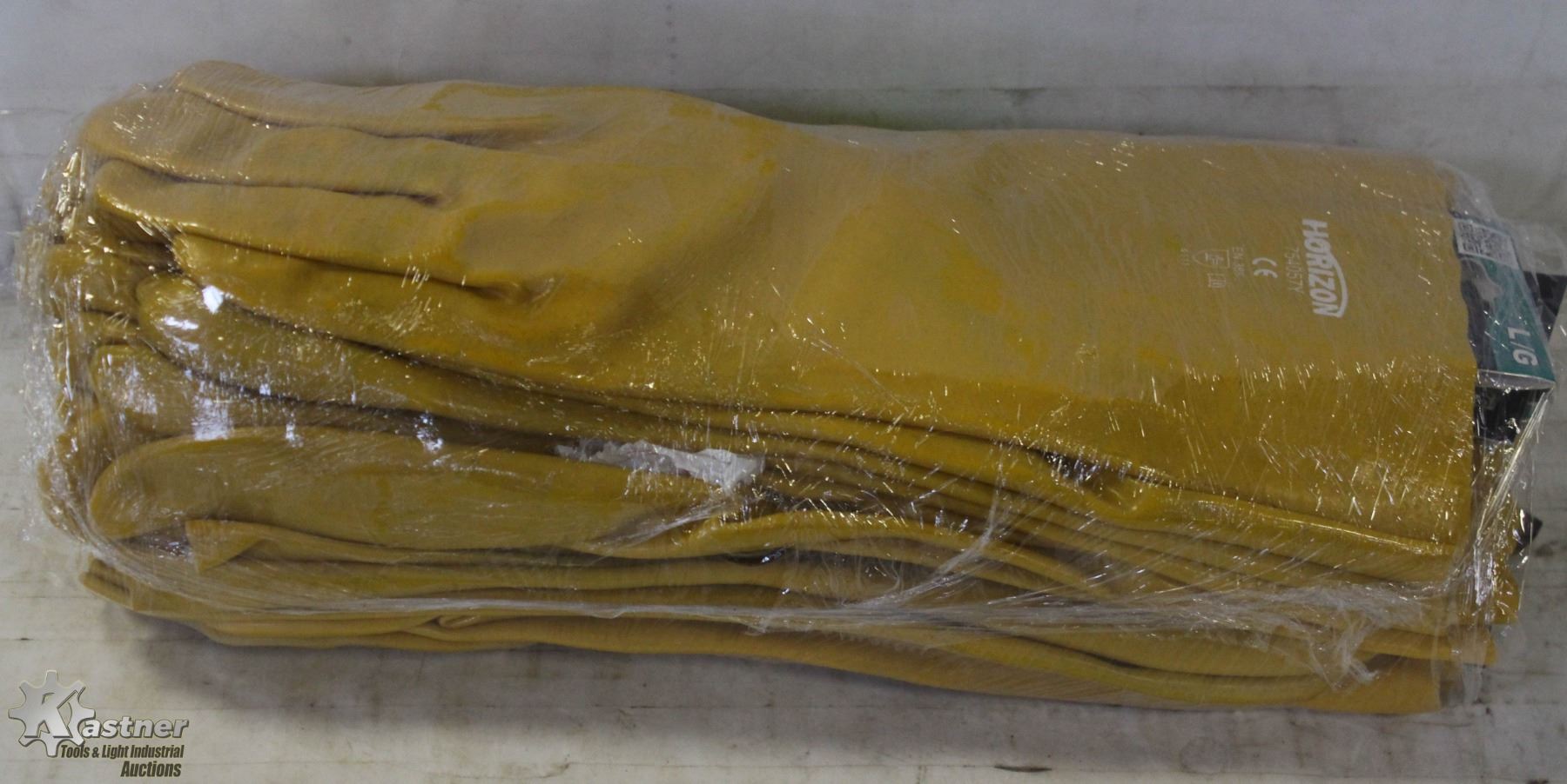 NEW YELLOW PVC SIZE - L - GAUNTLET STYLE GLOVES WITH INTERLOCK LINER - LOT OF 10 PAIRS