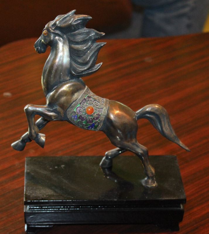 AMBER EYES AND CLOISONNE SADDLE WITH AMBER