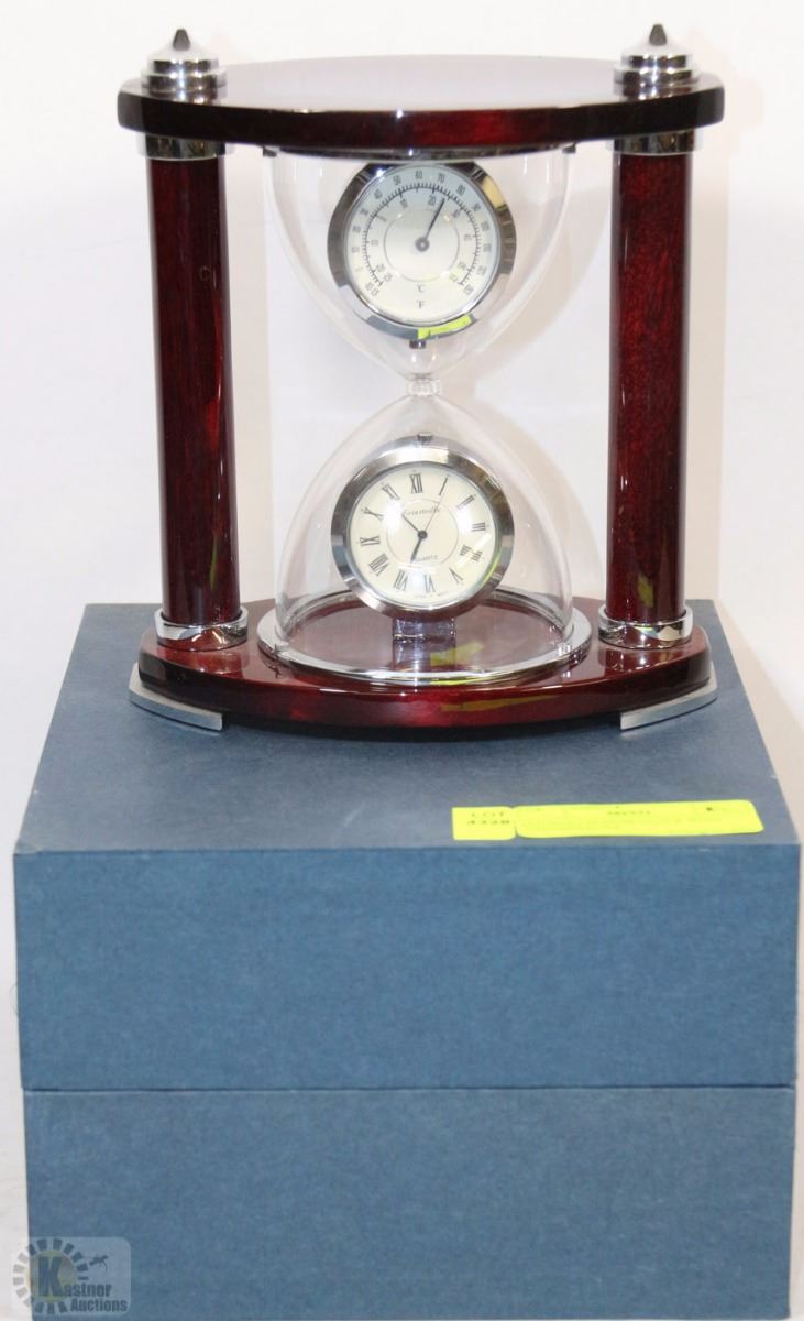 HOURGLASS DESK CLOCK WITH THERMOMETER