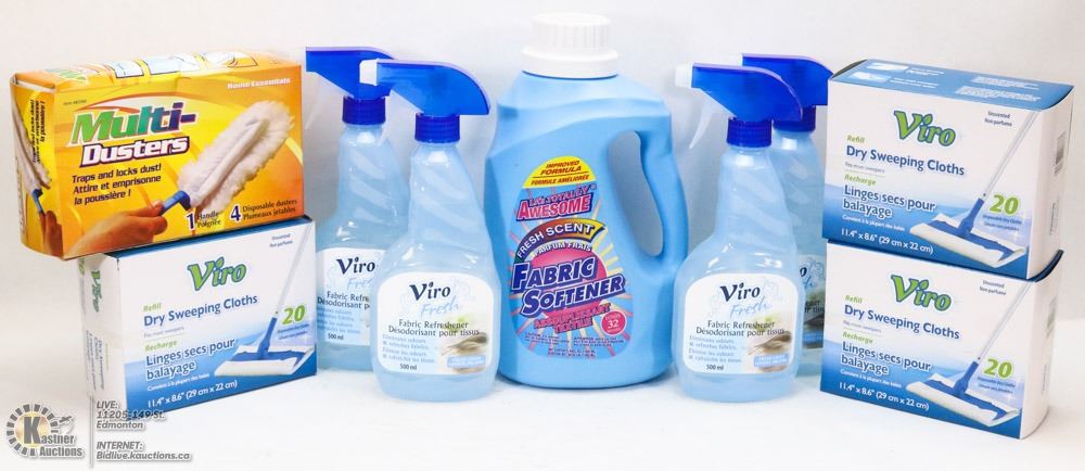 SPRAY, DRY SWEEPING CLOTHS, MINI DUSTERS, 32 LOAD JUG OF FABRIC SOFTENER