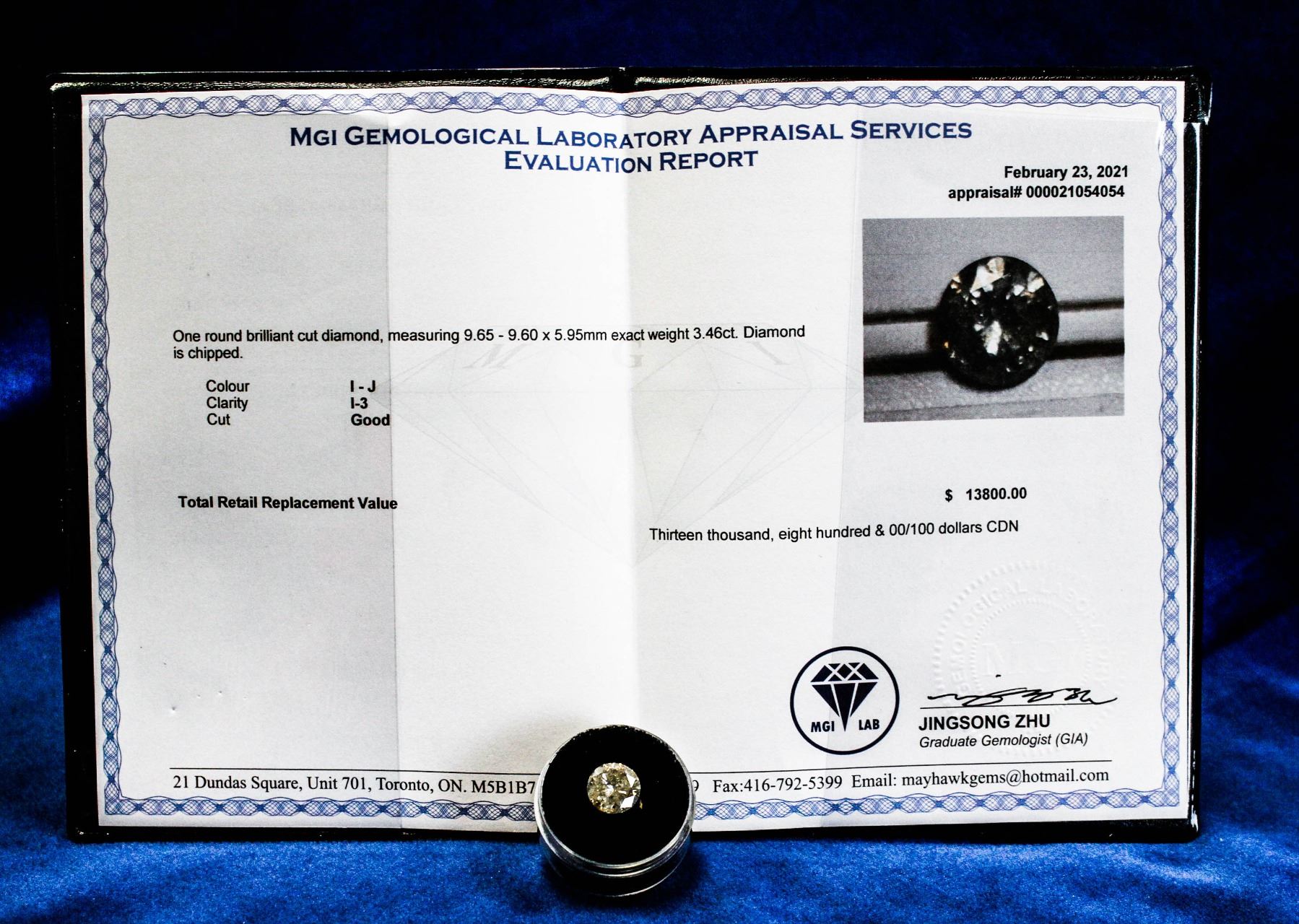HUGE 3.46 CARAT DIAMOND CERTIFIED $13,800.00