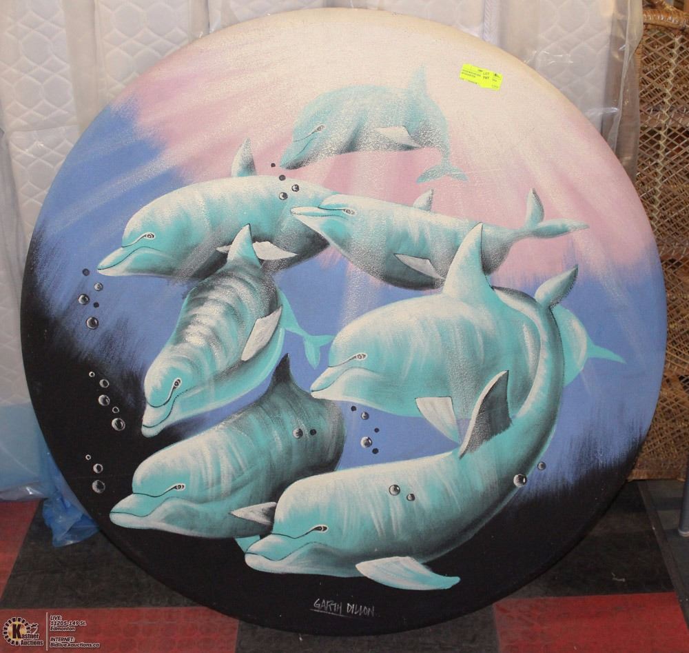 HUGE ROUND DOLPHIN PAINTING 44"DIAMETER