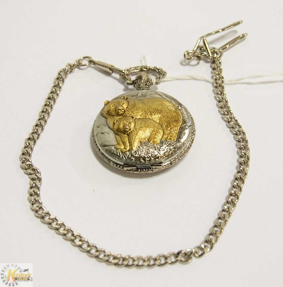 HUNTER CASE POCKET WATCH WITH CHAIN (BEARS)
