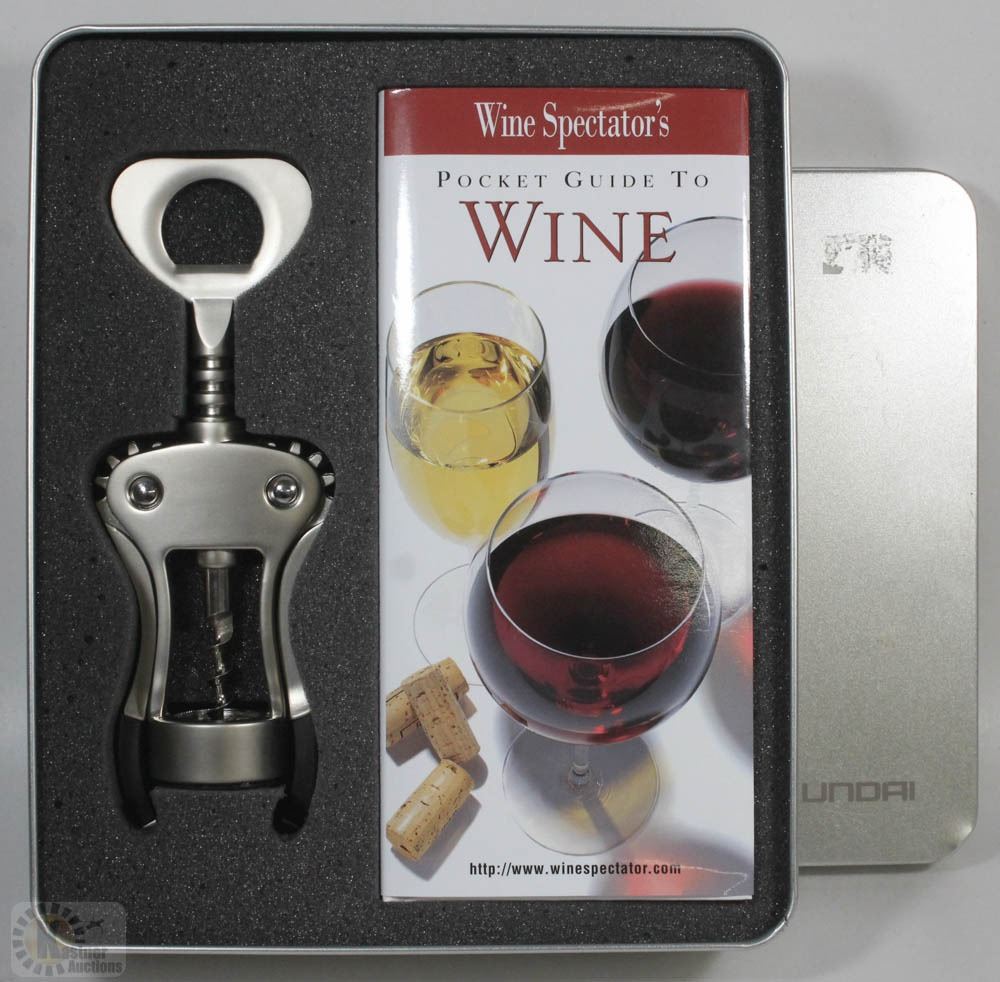 HYUNDAI TIN WITH CORK SCREW & WINE GUIDE BOOK