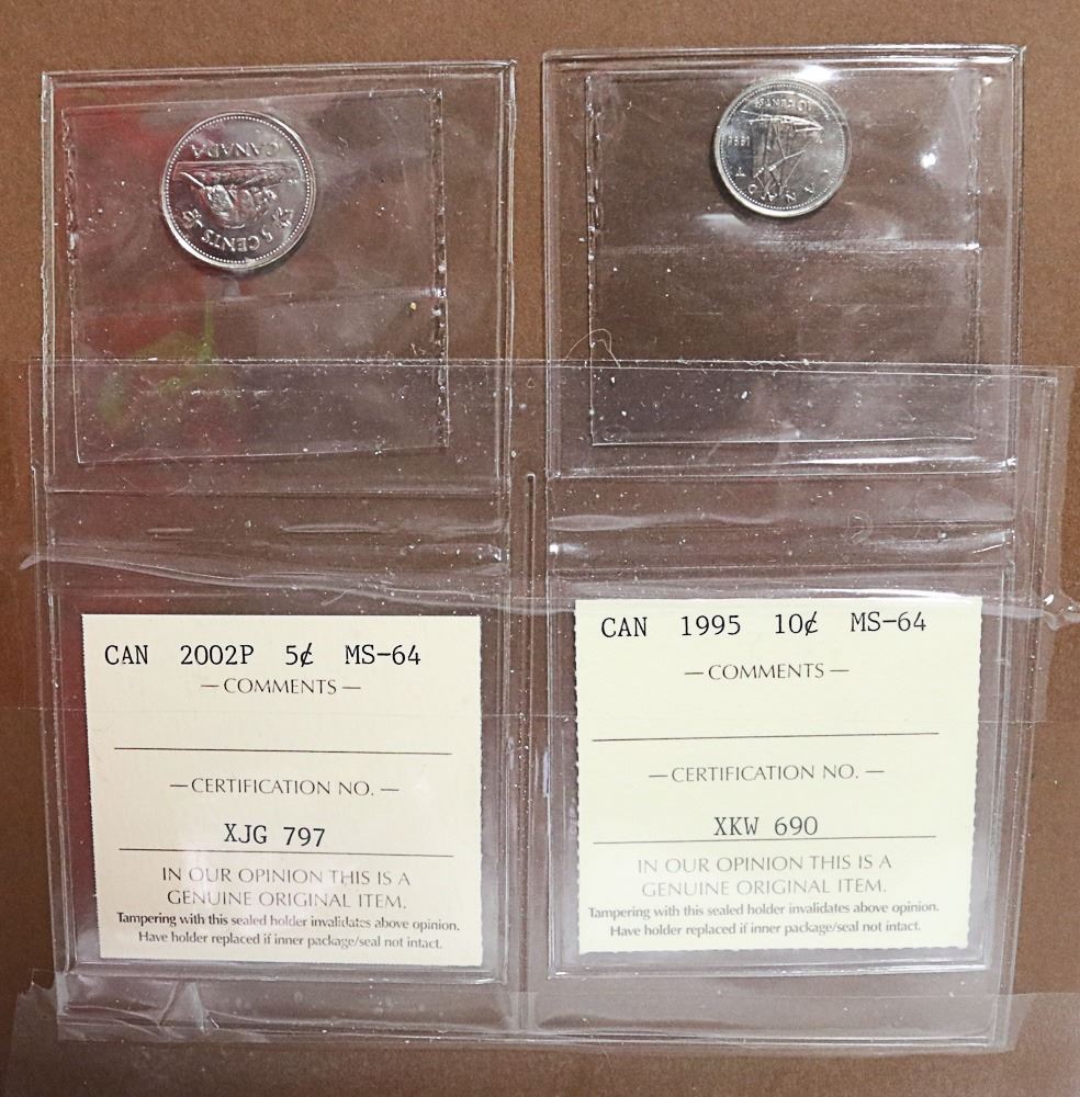 ICCS 2000P $.05 + 1995 $.10 GRADED MS-64 CANADA