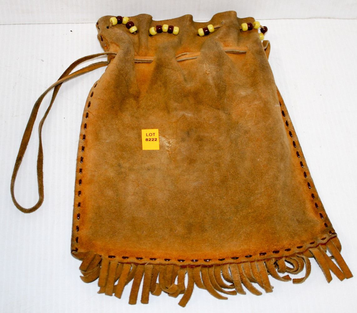 INDIGENOUS TAN LEATHER HIDE/ BEADED SACHET BAG
