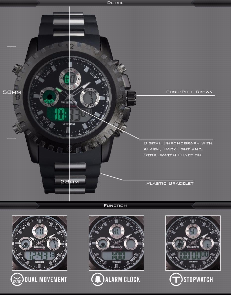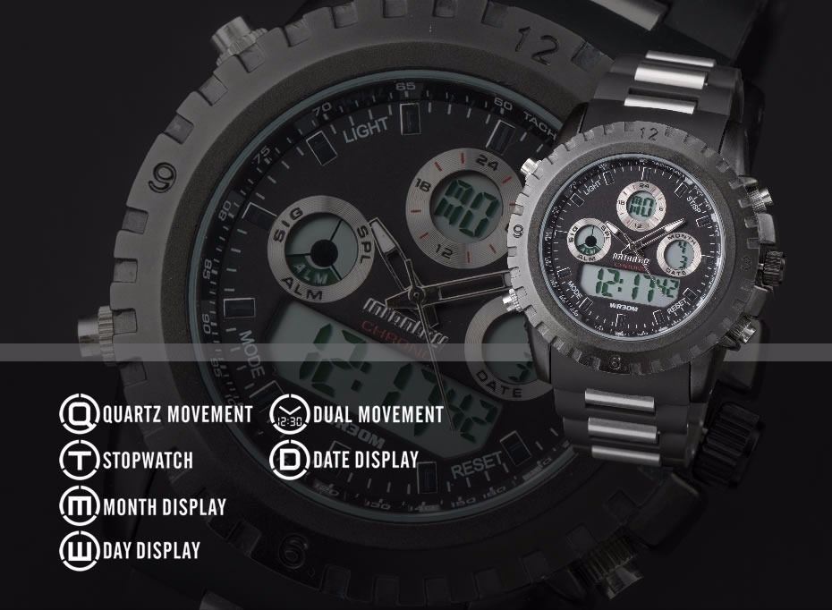 DATE STOPWATCH ALARM ETC. COMES WITH 1 YR. INTERNATIONAL WARRANTY CARD