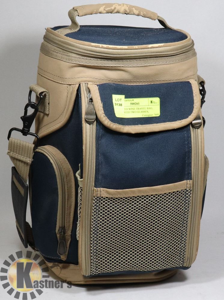 INSULATED WINE TRAVEL BAG, COMES WITH TWO GLASSES,
