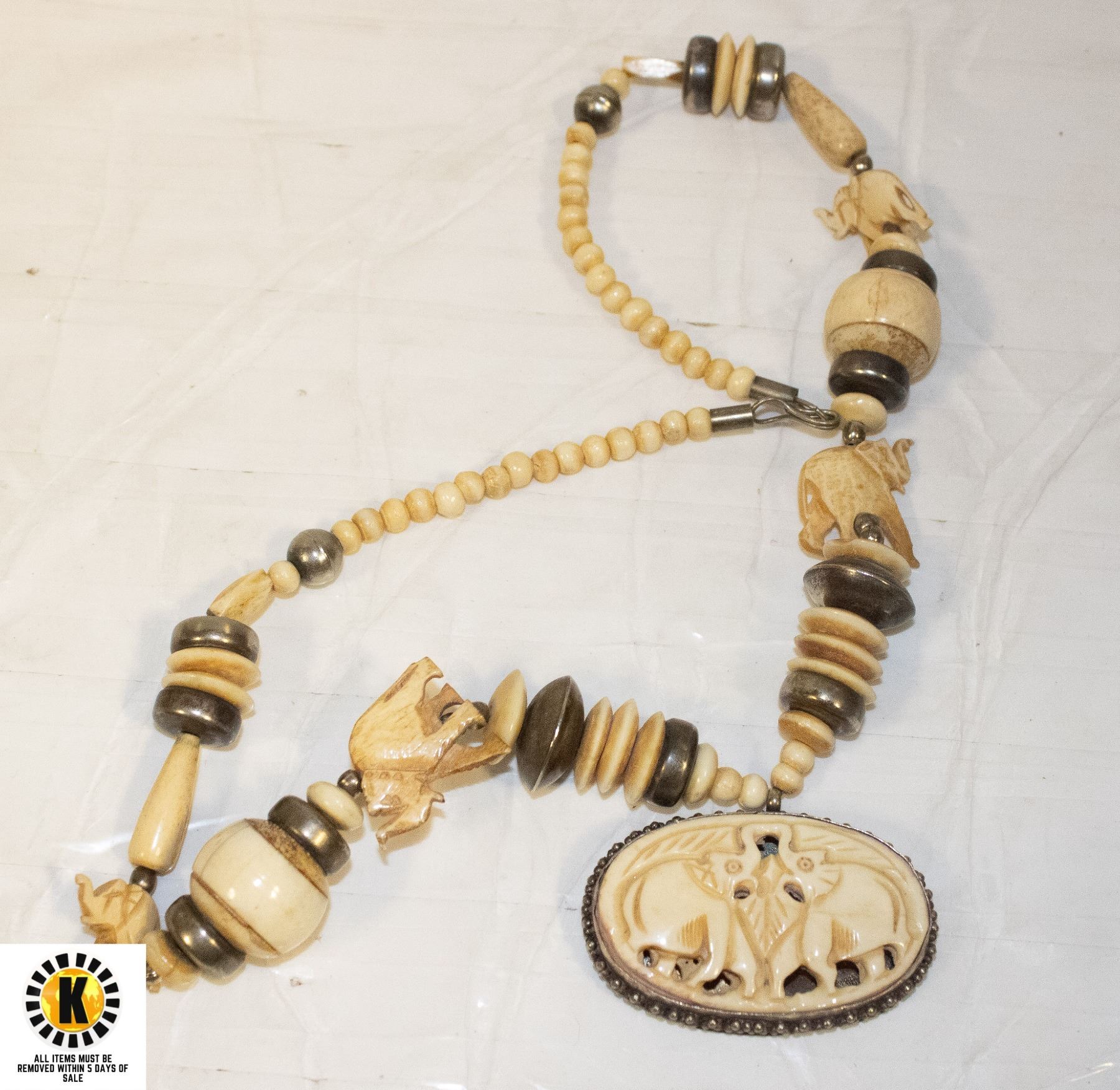 INTERESTING CARVED NATURAL MATERIAL NECKLACE