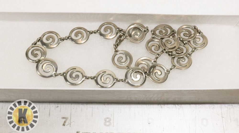 NICE COSTUME NECKLACE WITH SWIRL/WHIRLPOOL DESIGN IN BOX 14" LENGTH***ITEM IS LOCATED IN LETHBRIDGE ALBERTA, PICKUP IS AT OUR LETHBRIDGE LOCATION ONLY, WORLDWIDE SHIPPING IS AVAILABLE***