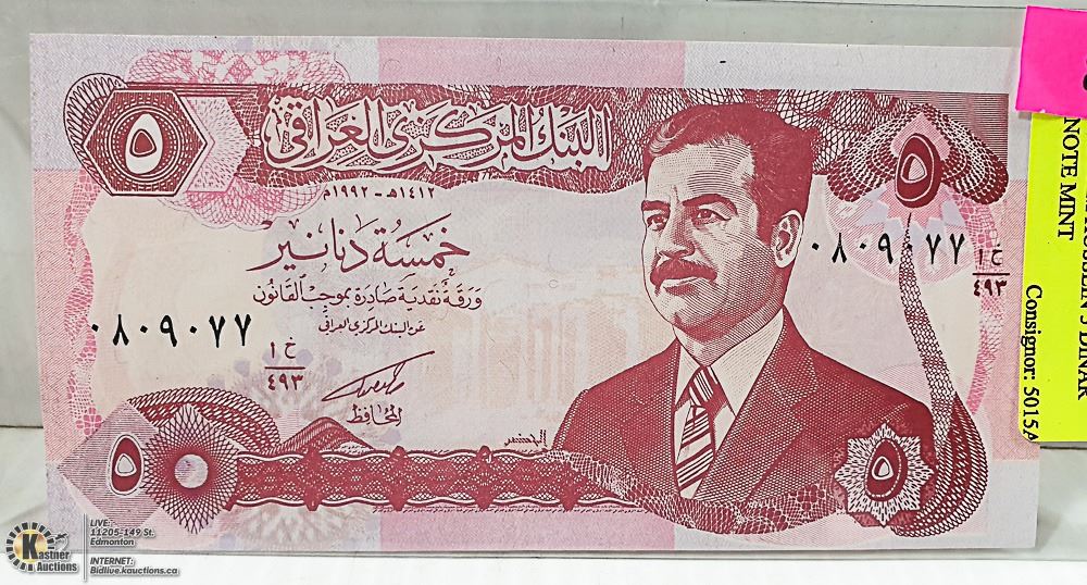 IRAQ SADDAM HUSSEIN 5 DINAR BANKNOTE MINT