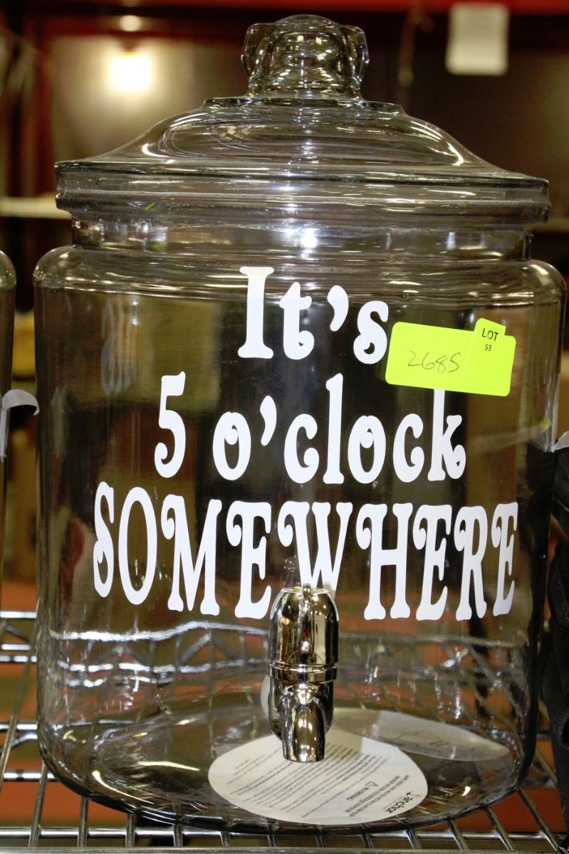 "IT'S 5 O' CLOCK" 2 GALLON DRINK DISPENSER