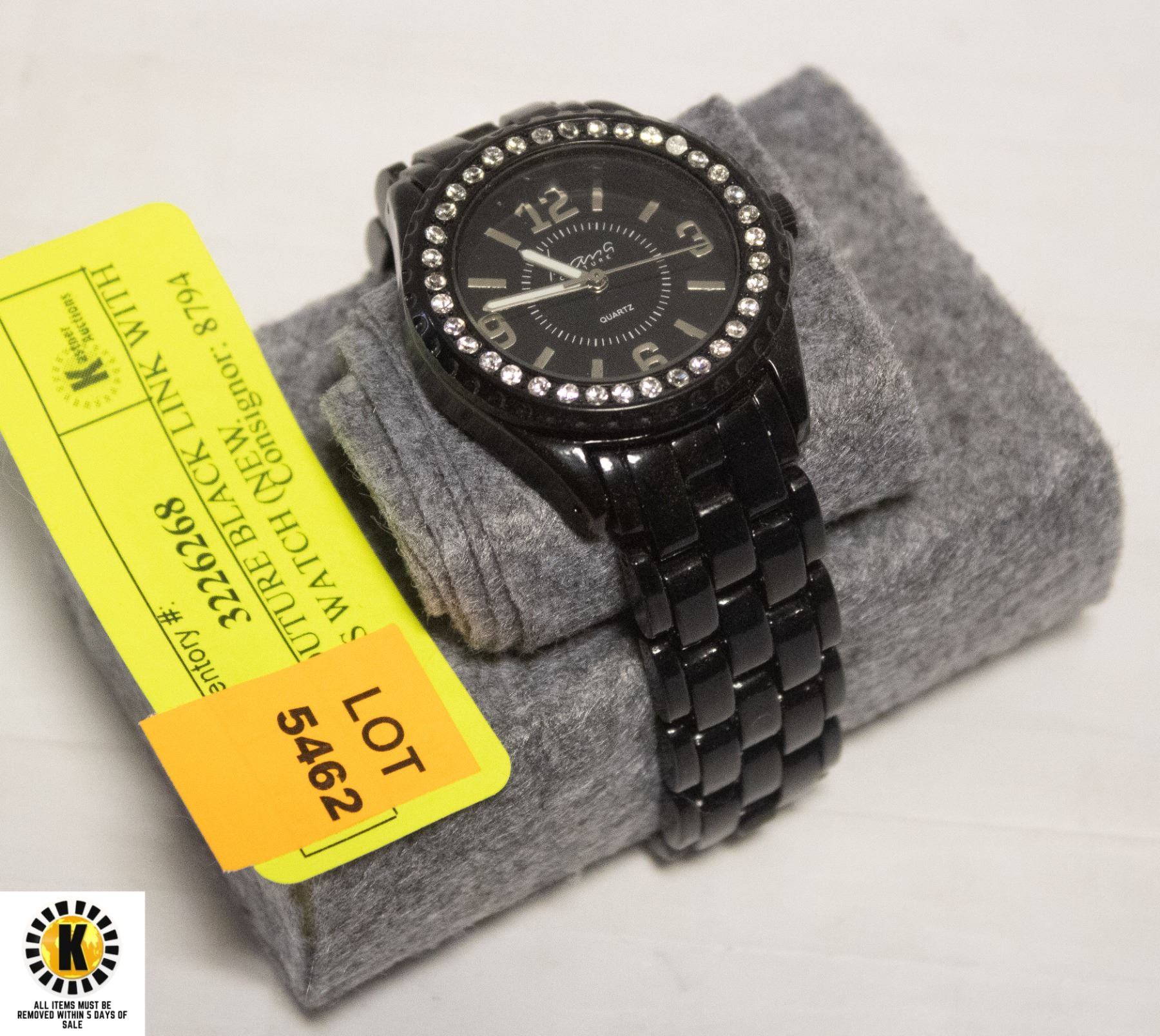 IVANA COUTURE BLACK LINK WITH CRYSTALS WATCH (NEW