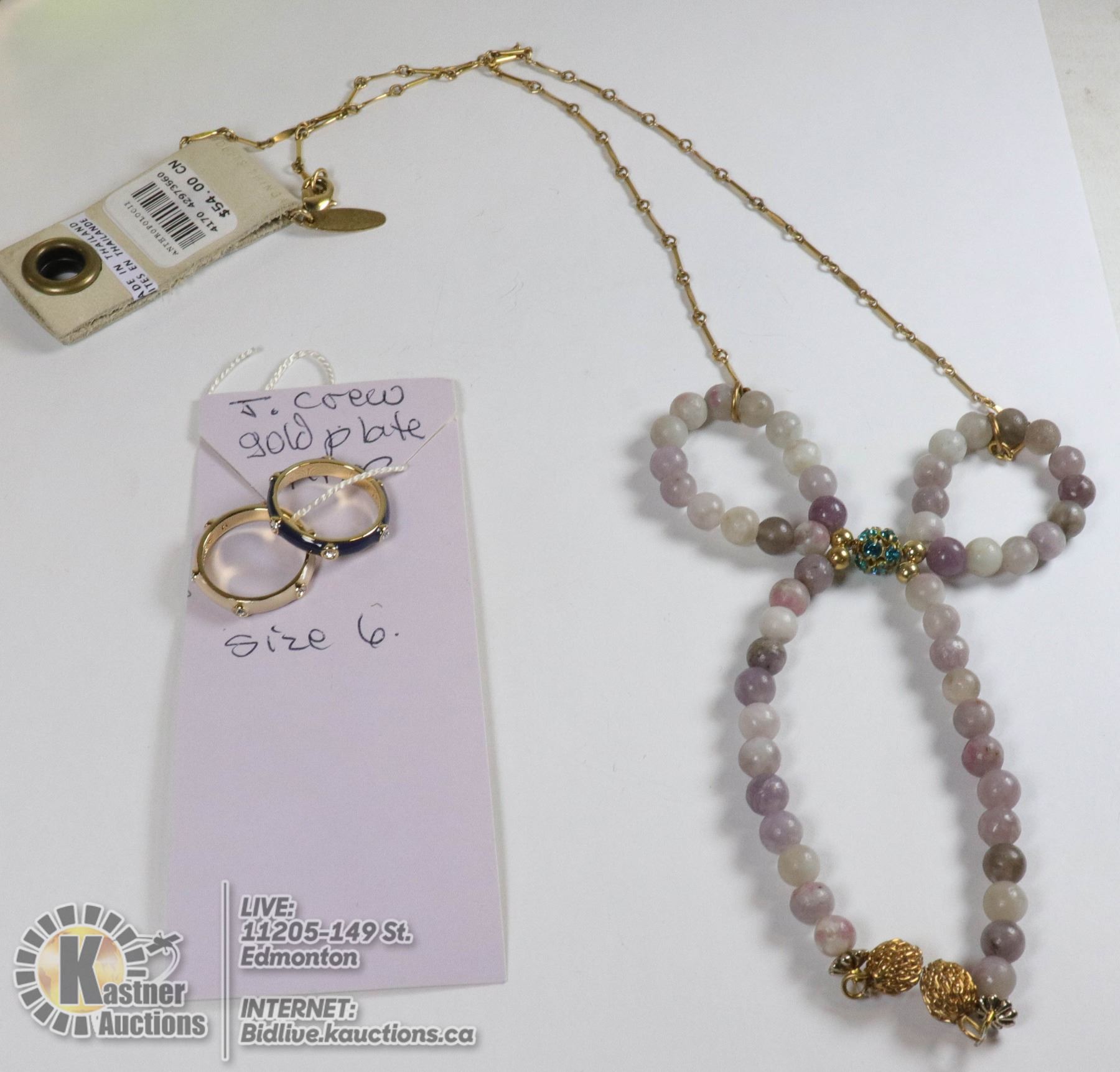 GOLD PLATE JCREW RINGS SIZE 6, ANTHROPOLOGIE GEMSTONE & SWAROVSKI BOW NECKLACE