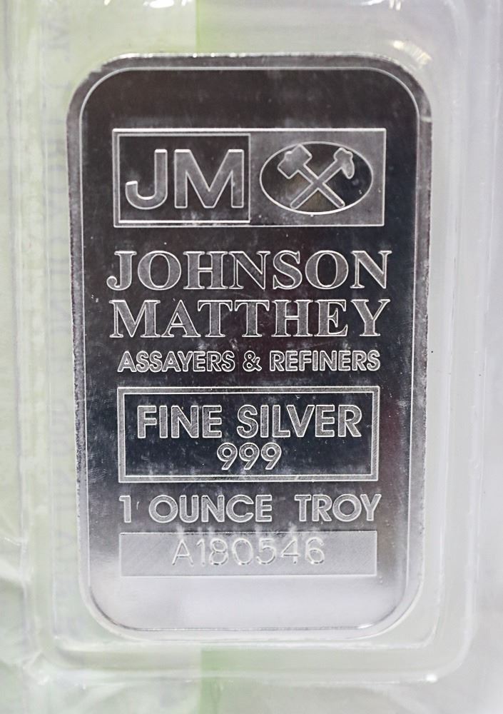 J.M. 1 TROY OUNCE .999 SILVER BAR