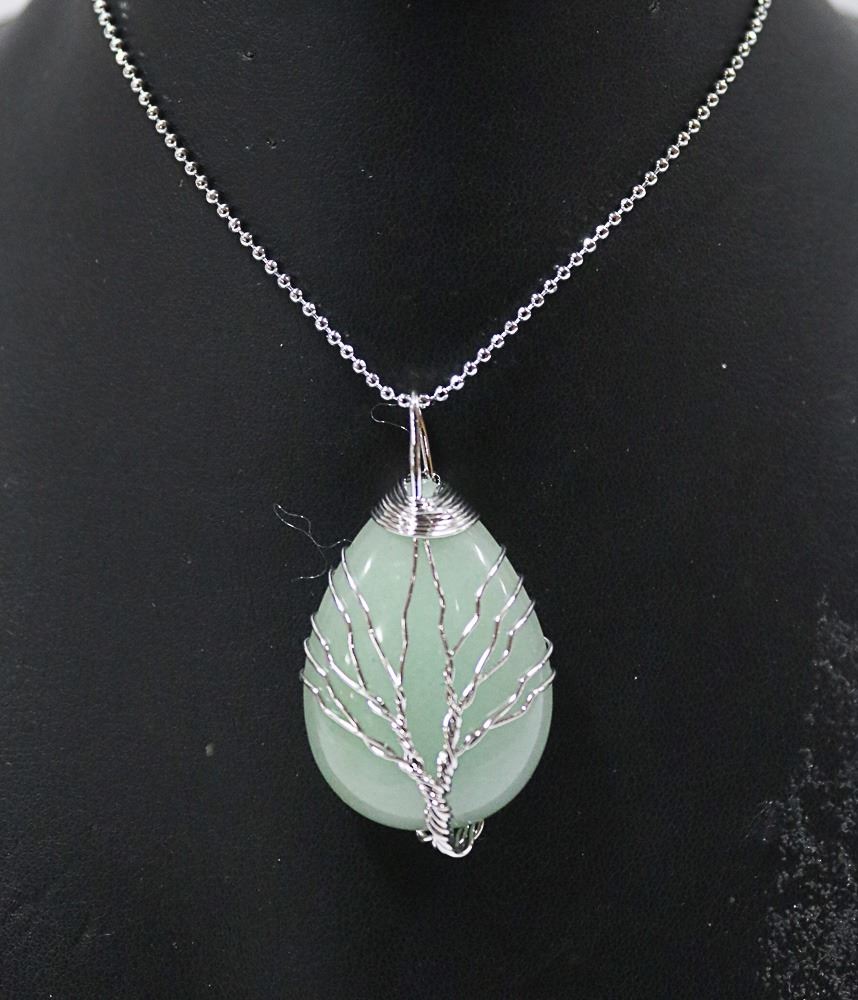 JADE STONE TREE OF LIFE NECKLACE STAMPED 925