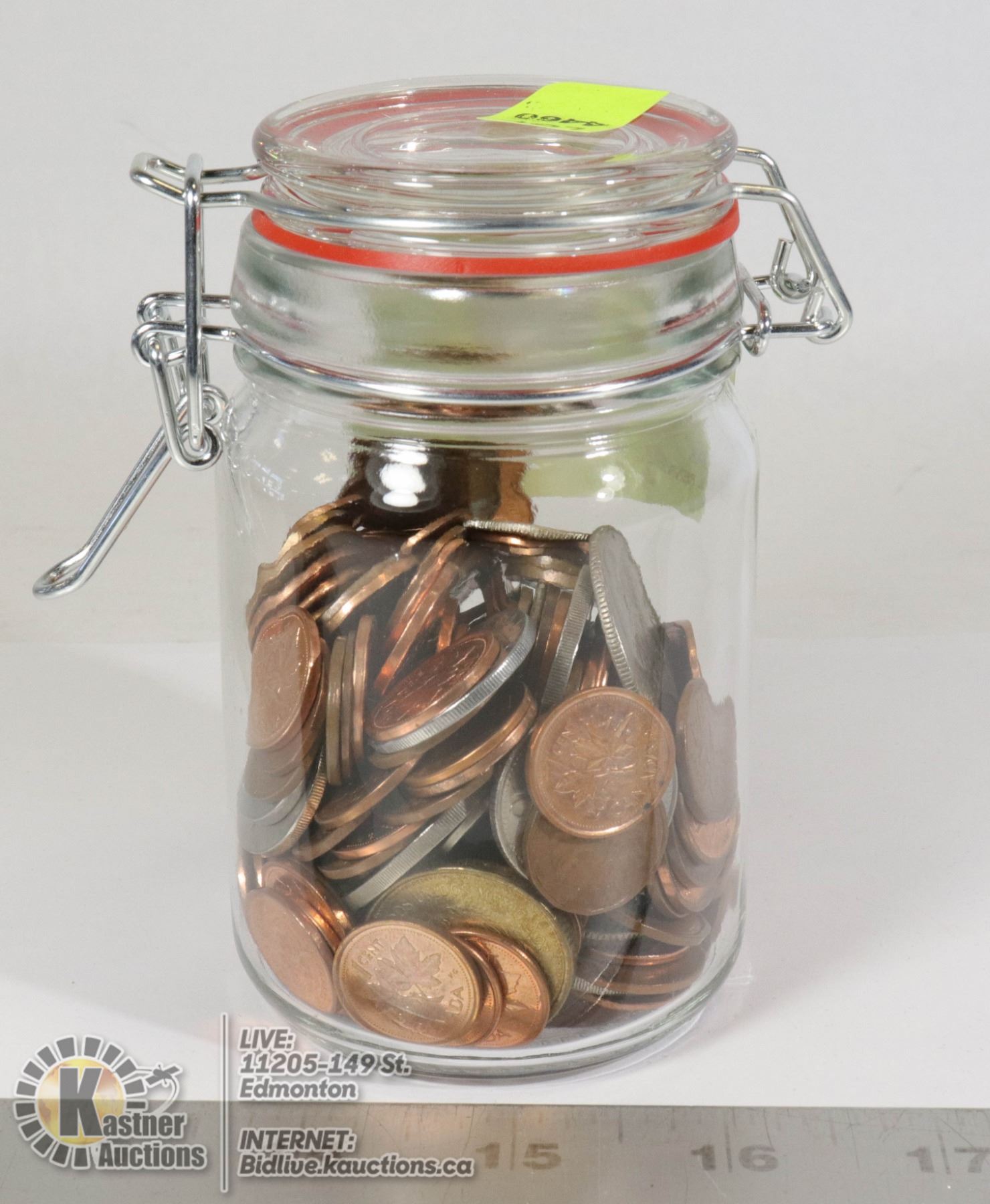 JAR WITH OLD MIXED WORLD COINS & PENNIES