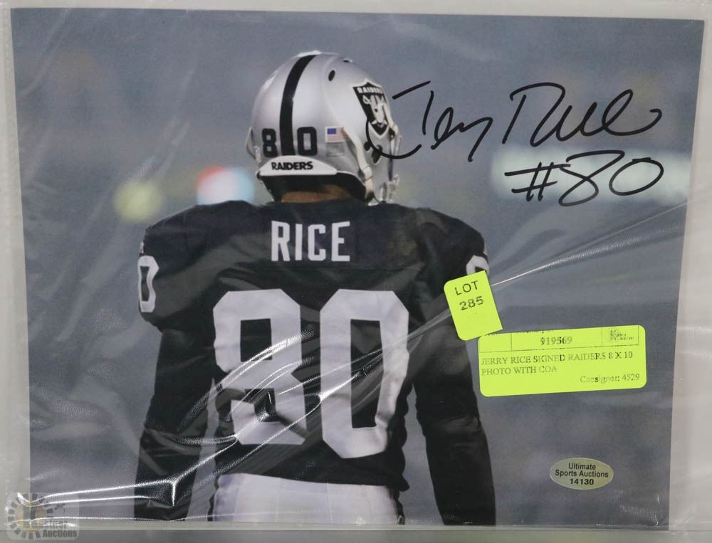 JERRY RICE SIGNED RAIDERS 8 X 10 PHOTO WITH COA