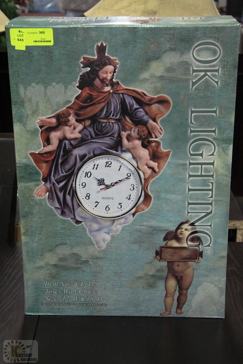 JESUS WITH CHERUBS QUARTZ WALL CLOCK 12"W X 18"H