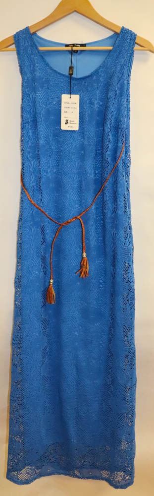 CROCHET LONG DRESS WITH FAUX LEATHER BELT SIZE M