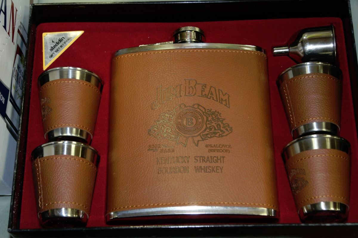 FLASK AND LEATHER WRAPPED SHOT GLASSES