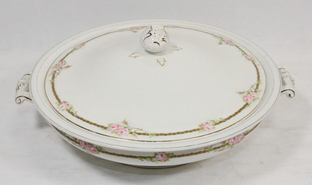1940'S 2 HANDLED SOUP TUREEN WITH PINK ROSES DESIGN