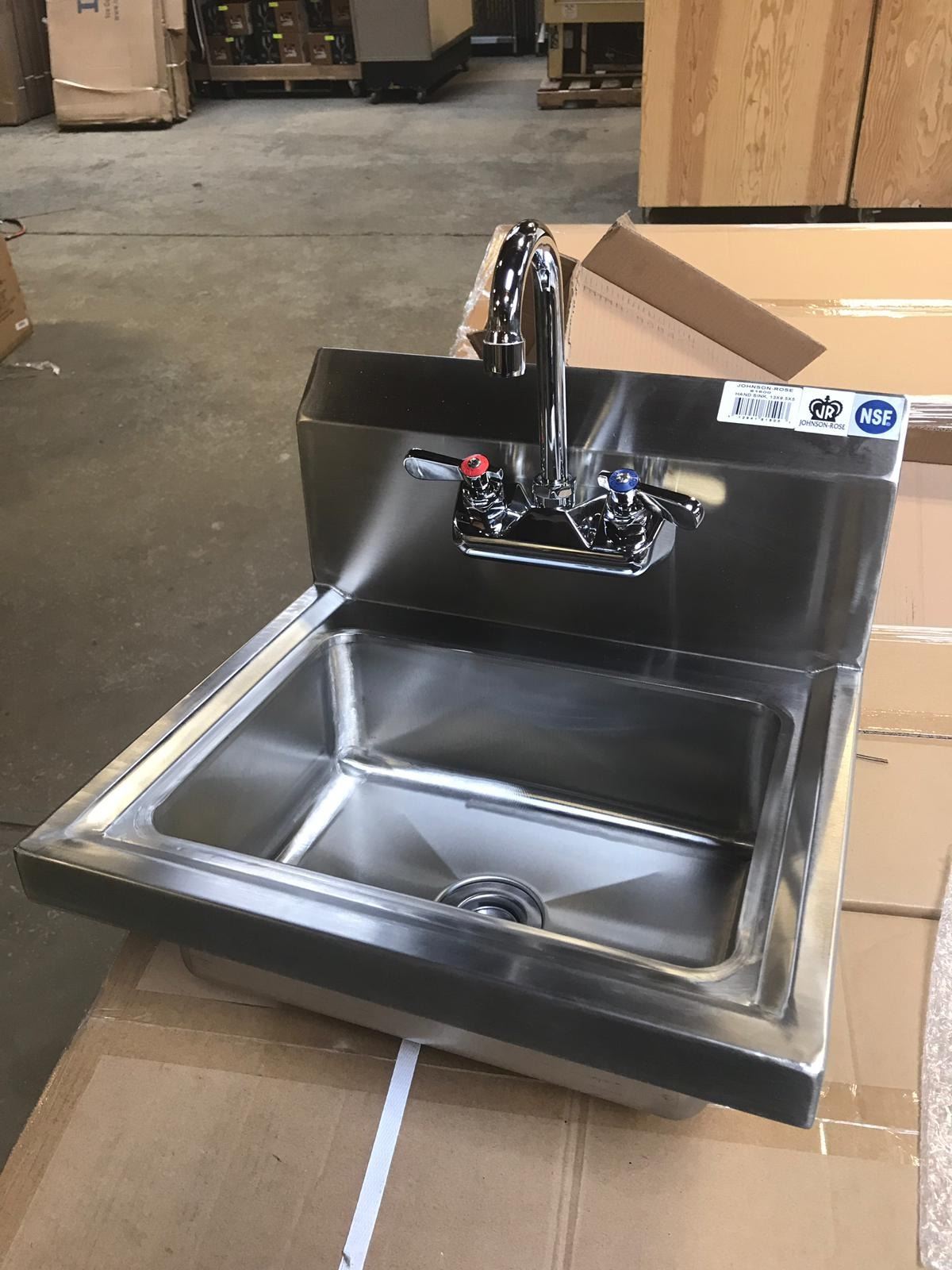 DD21 NEW JOHNSON ROSE 81500 HAND SINK, COMPLETE WITH FAUCET, DRAIN BOWL SIZE 14" x 10" x 5-1/4", 304 STAINLESS STEEL