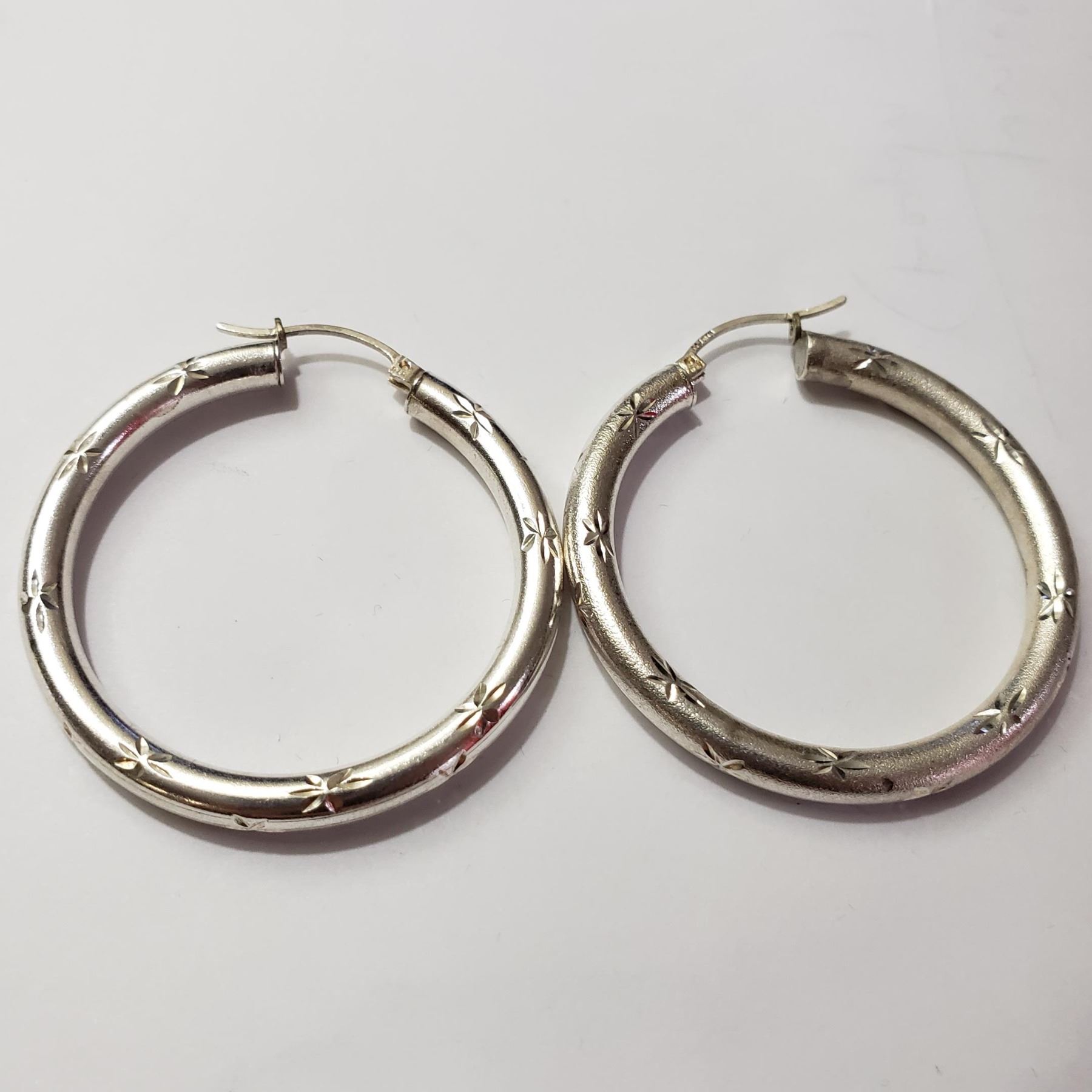 JP892-84 SILVER LARGE HOOP EARRINGS