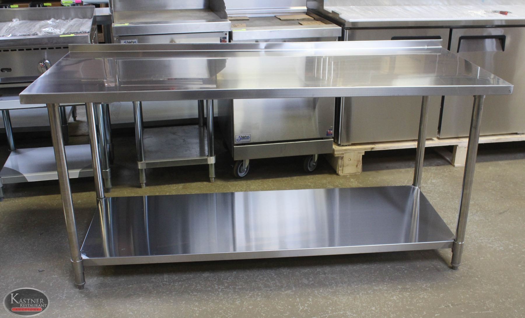 DD42 NEW JOHNSON ROSE 81373, CORROSIVE RESISTANT, 18 GAUGE, 304 STAINLESS STEEL, 72" X 30" & 1-1/2" BACKSPLASH, GALVANIZED LEGS & UNDERSHELF, ADJUSTABLE PLASTIC BULLET FEET, NSF.