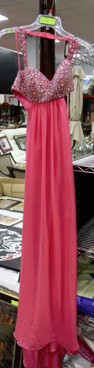 JUMP APPAREL SEQUINED EVENING GOWN CORAL SIZE 5/6