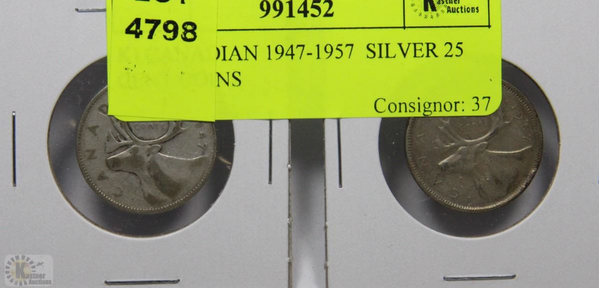 K) CANADIAN 1947-1957 SILVER 25 CENT COINS