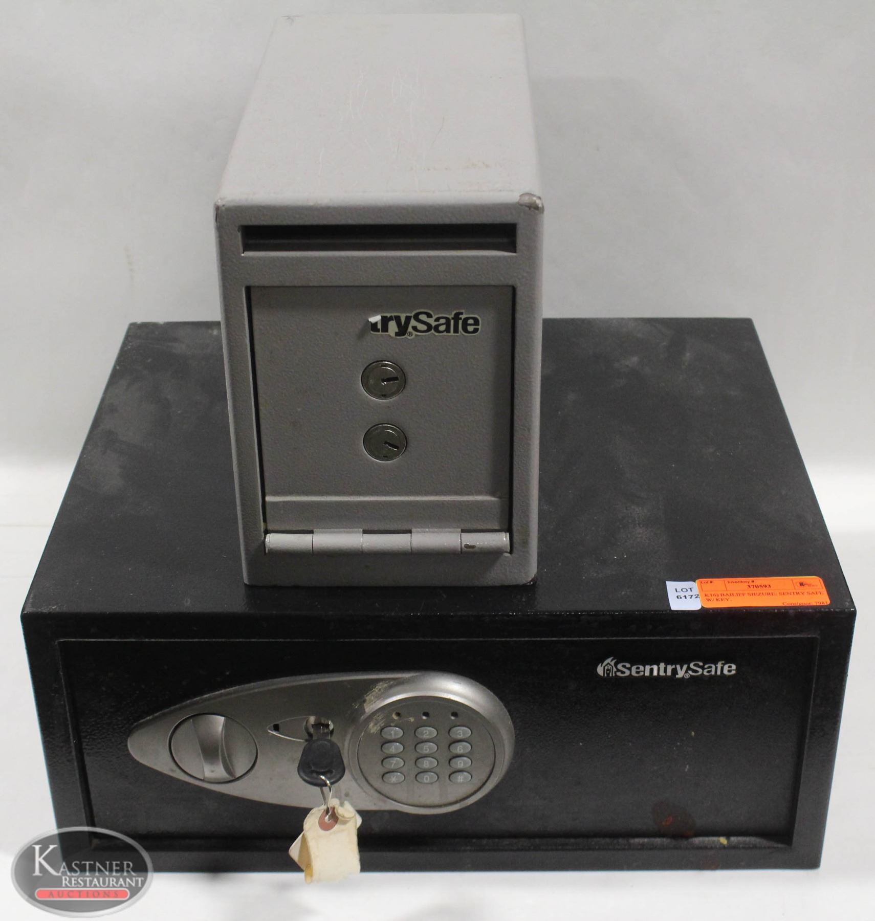 14"X17"X7" W/ KEY, CODE UNKNOWN. 12"X6"X8.5" W/ NO KEYS. KEY ON TAG 62.