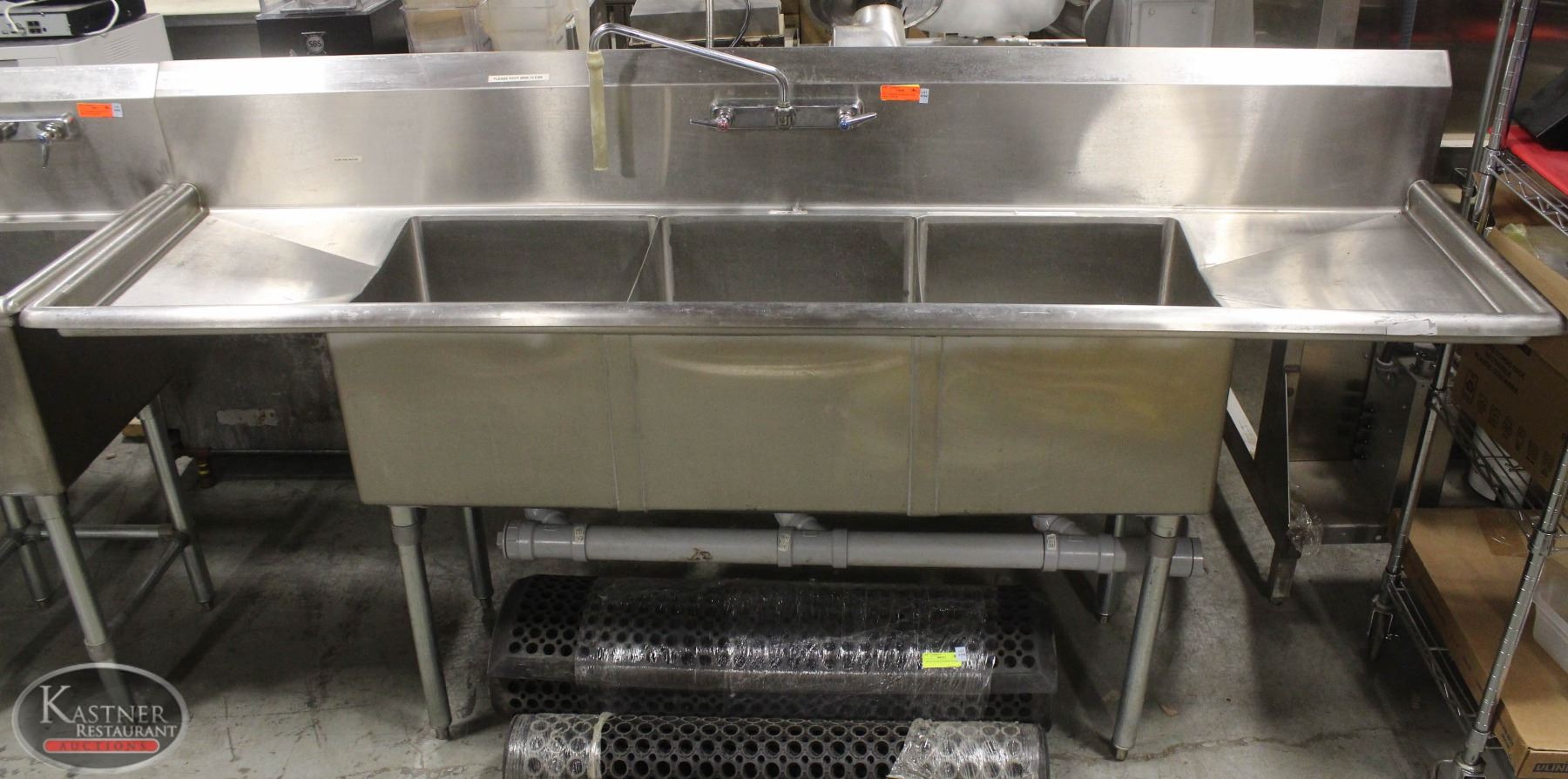 3-WELL SINK W/2 DRAINBOARDS & FAUCET. 90"X24"X37"