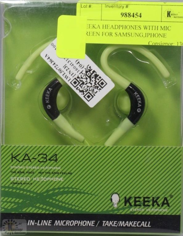 KEEKA HEADPHONES WITH MIC GREEN FOR SAMSUNG,IPHONE