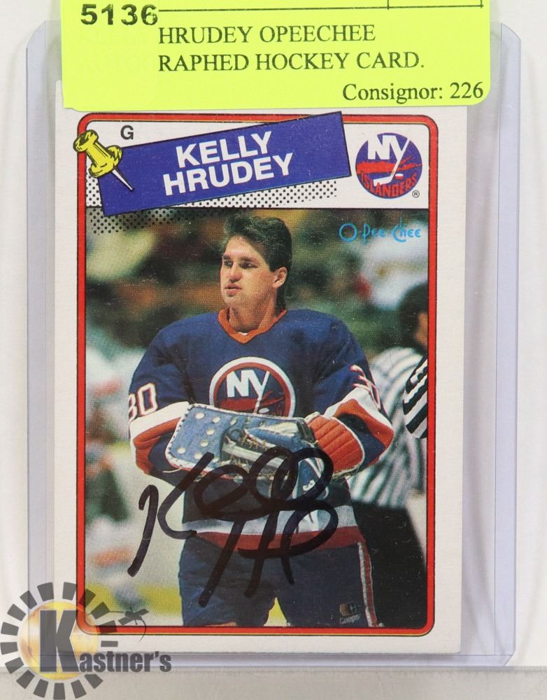 KELLY HRUDEY OPEECHEE AUTOGRAPHED HOCKEY CARD.