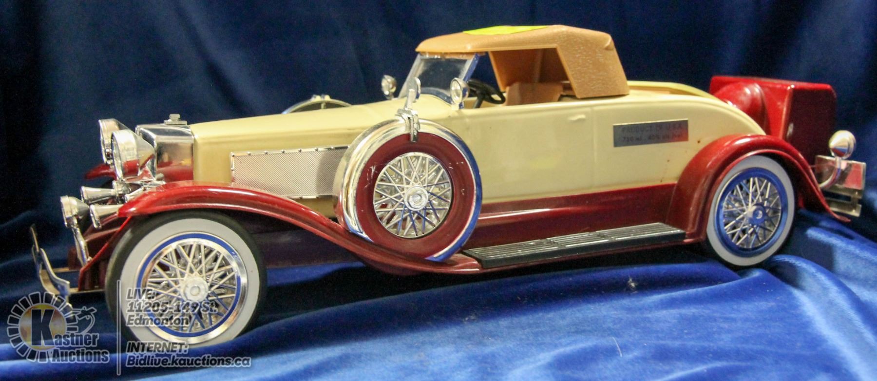 KENTUCKY STRAIGHT BOURBON WHISKEY 1935 DUESENBERG CAR 80 PROOF, 750ML, BOTTLED BY JAMES BEAM LIMITED EDITION -COLLECTIBLES *MUST BE 18 OR OLDER TO BID. NO ALCOHOL WILL BE SHIPPED. MUST PROVIDE PROOF OF AGE AT PICK UP. NOONE MAY PICK UP ON YOUR BEHALF, NAME ON ID MUST MATCH NAME ON INVOICE.