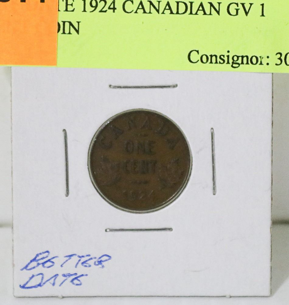 KEY DATE 1924 CANADIAN GV 1 CENT COIN